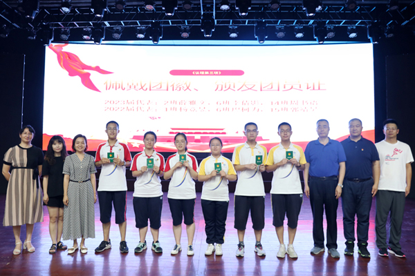 团徽,是代表共青团的徽章,它不是一个装饰品,也不是纪念章,而是共青团肩负重任的标志。学校领导、各年级各班级团支书为新团员们颁发团员证,佩戴团徽。