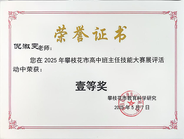 市三中两名教师在攀枝花市2025年高中班主任技能大赛展评活动中荣获一等奖
