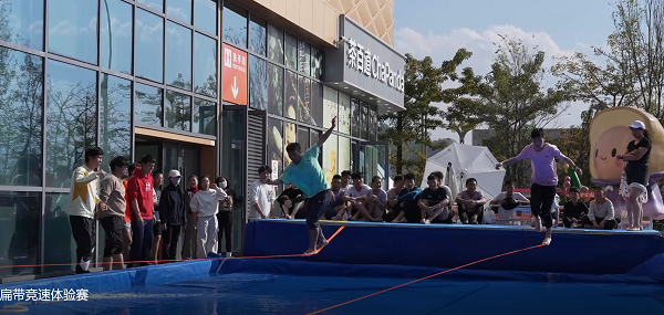扁带运动是一项固定在两点间的扁带上保持平衡行走的竞技运动,兼具竞技性、观赏性与趣味性,被称为"绳索上的芭蕾"。随着裁判哨声响起,选手们依次踏上扁带,有的疾步前行展现爆发力,有的稳控姿态彰显平衡技巧,在这根方寸之带上书写着属于自己的勇气与坚持。