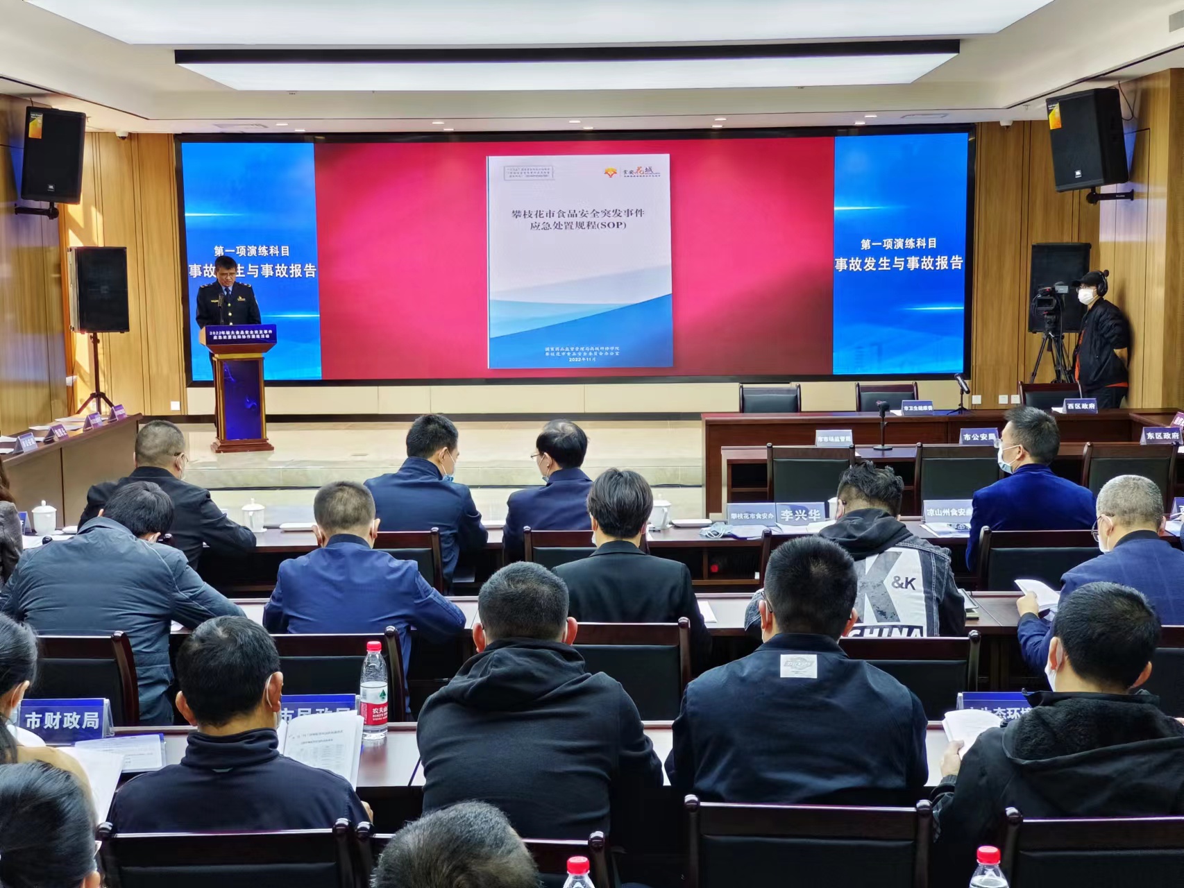 为压紧压实食品安全“两个责任”,有效推进四川省攀枝花市、凉山州与云南省昭通市、楚雄州、丽江市食品安全区域协作,全面提升两省五市(州)食品安全应急处置能力,12月7日,两省五市(州)2022年较大食品安全突发事件边际协作演练在攀枝花市成功举行。四川省市场监管局副局长、省食品安全办副主任周传军,攀枝花市政府副市长唐忠柱等领导出席演练活动。国家药品监督管理局高级研修学院教授房军通过网络连线远程对演练进行点评,开展食品安全应急管理培训授课。