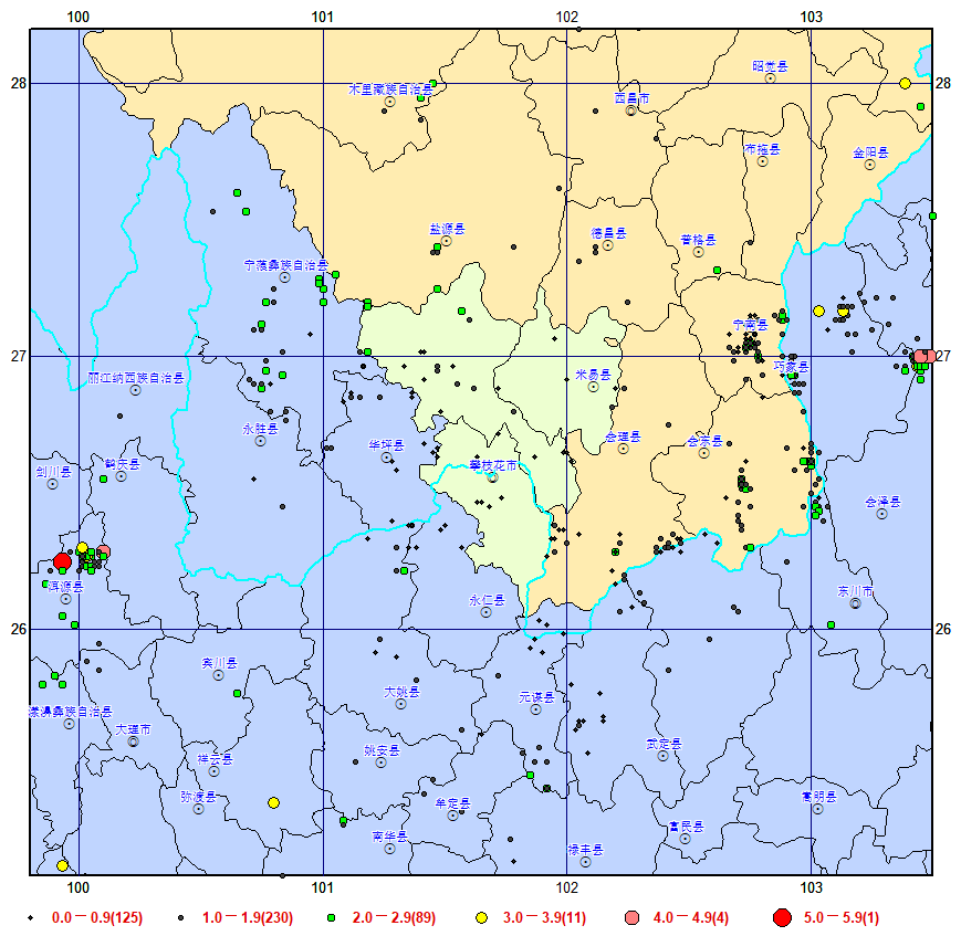 2025年1-11月,攀枝花市地震监测中心累计监测到本市及周边地区地震707次(多台定位460次,单台记录247次),最大地震为6月5日04时31分云南大理州洱源县5.0级地震;攀枝花市辖区内共监测到29次可定位地震,最大地震为7月26日15时32分盐边县红宝苗族彝族乡2.4级地震。
