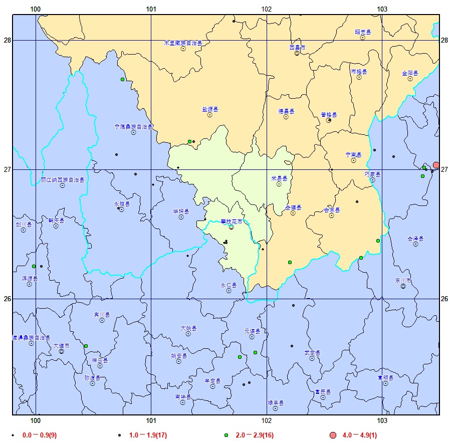 2026年1月攀枝花市及周边地区震中分布图(多台定位)