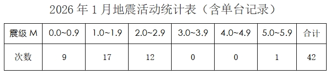 2026年1月地震监测情况