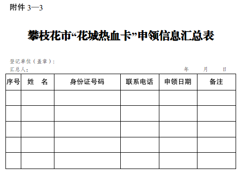 3—3.攀枝花市“花城热血卡”申领信息汇总表