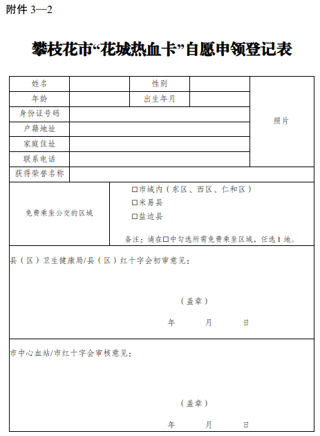 3—2.攀枝花市“花城热血卡”自愿申领登记表