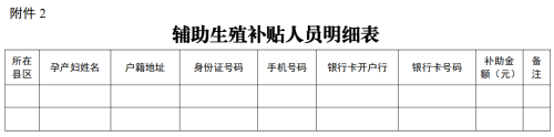 (四)汇总。县(区)卫生健康局收到市妇幼保健院(辅助生殖中心)质控意见后,进一步完善审核确认结果,将上年符合补助条件的辅助生殖补贴人员明细表(附件2)及补助总金额于当年2月20日前报市卫生健康委,市卫生健康委汇总后于2月底前报市财政局,市财政局审核后于3月底前将市级承担部分补助金下拨各县(区)。