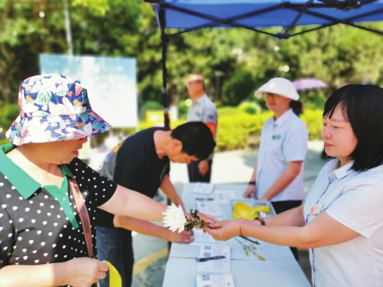 市殡葬服务中心免费发放祭祀的菊花,倡导文明祭祀。