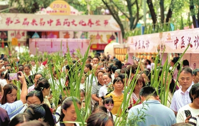 家住杨柳湾社区的赵阿姨,一大早就来到药市。她说,每年端午节逛药市是传统,在这里不仅能挑选新鲜的药材,还能体验各种传统文化活动。