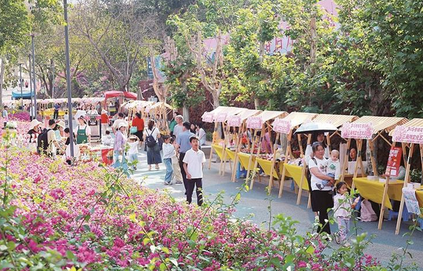 开办“春染繁花·情满西区”共富集市,强化河门口公园“休闲、打卡、消费”一体化场景。搭建展示展销区域,设置展位30个,邀请各县(区)及各类商家开展商品、服务产品等促销活动,包含文创产品展示销售、特色商品销售、美食展销。邀请三大通信运营商、广电及移动设备经销商、电器产品经销商等开展让利促销宣传活动。同期开展“花海美拍”活动。