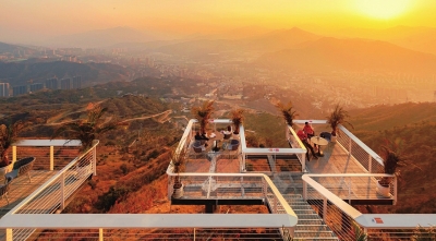 坐于山顶伴山咖啡馆,尽览城市风光。 (特约摄影师 王东 摄)