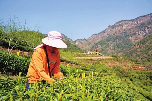 图为茶农采摘国胜春茶。
