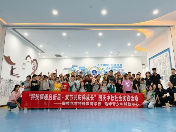 2025年9月30日,攀枝花市特殊教育学校联合酷咔青少年科教中心,开展“科技探趣启新思,双节共庆伴成长”校外社会实践活动,盲、聋、培智三类学生参与,在科技体验中迎接国庆中秋双节,感受社会关爱与科技魅力。