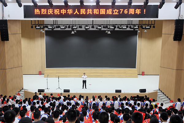 在9月30日的升旗仪式上,同学代表作主题演讲,呼吁全体同学,扛起时代的责任,继续书写新的辉煌。