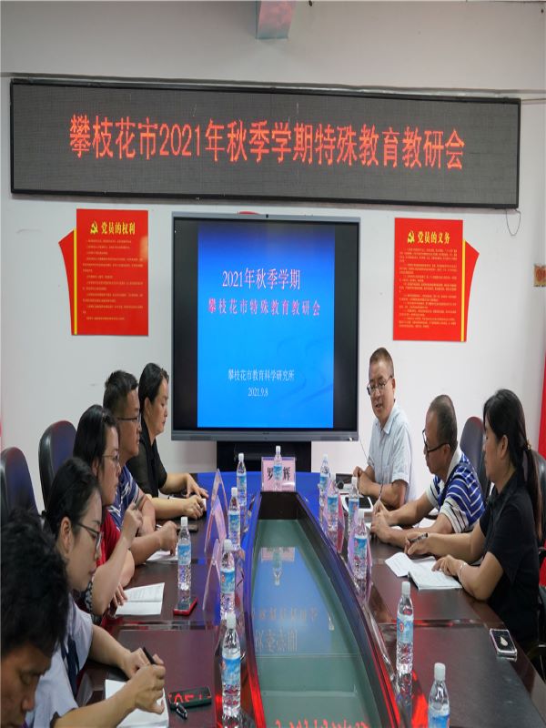 2021年9月8日上午,由攀枝花市教科所主办、市特殊教育指导中心承办的全市特殊教育教研工作会在市特校举行,来自三区两县的特教教研员、随班就读老师共计40余人参加了此次会议。
