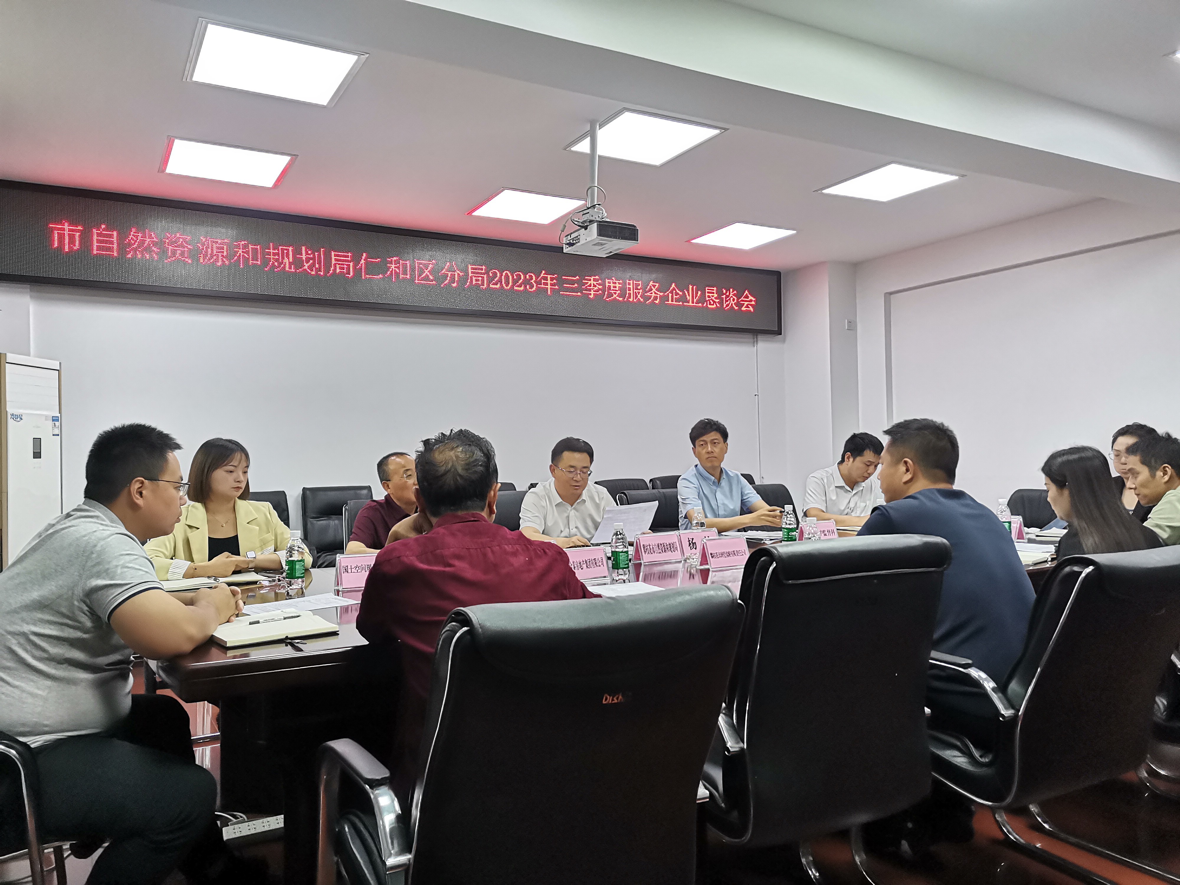 为进一步了解企业在生产经营中存在的难点问题,查找出制约企业发展的政策性因素,持续优化营商环境。2023年10月12日下午,市自然资源和规划局副局长杨林到仁和区召开了2023年第三季度服务企业恳谈会。会议邀请了部分人大代表、政协委员和企业代表参会。市局规划科、耕保科、管制科、利用科及仁和区分局班子成员参加了会议。
