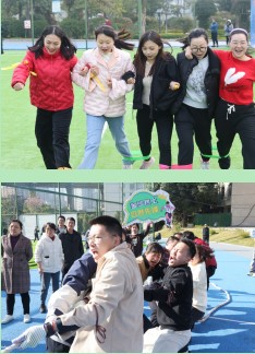 “趣味运动会”在激昂的音乐声中激情开场,共设置了桃花朵朵开、一圈到底、5人6足、水杯传递、拔河比赛5个团体趣味运动项目,比赛现场既紧张激烈,又妙趣横生,每项运动不仅考验参赛选手的动作协调性,更是团结协作与体力智慧的比拼。赛场上,观众的加油声、呐喊声此起彼伏,欢乐的笑声洋溢在赛场的每个角落。