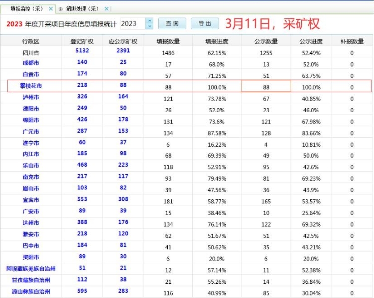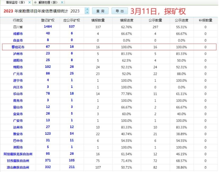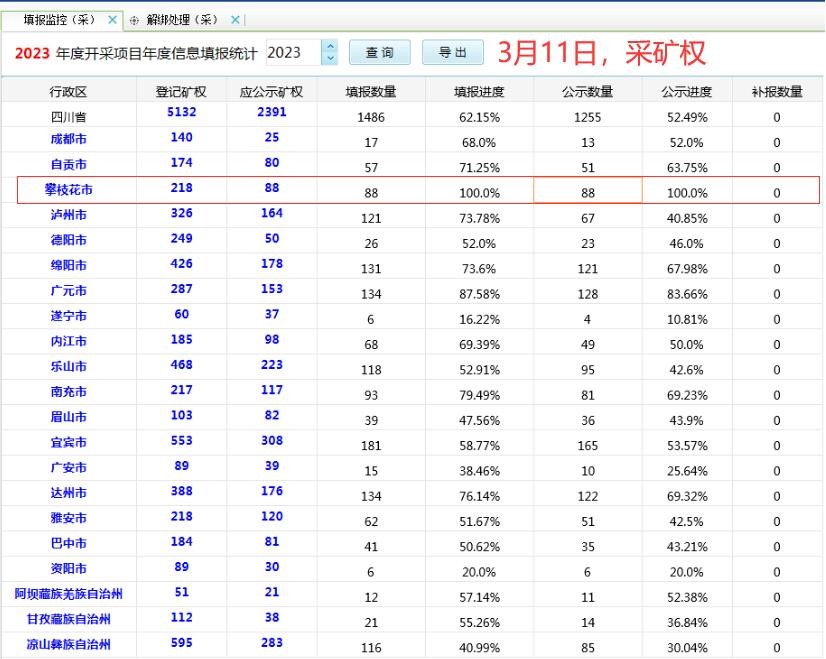 统筹谋划加油干 率先完成争一流——攀枝花率先在全省完成2023年度矿业权人勘查开采信息公示