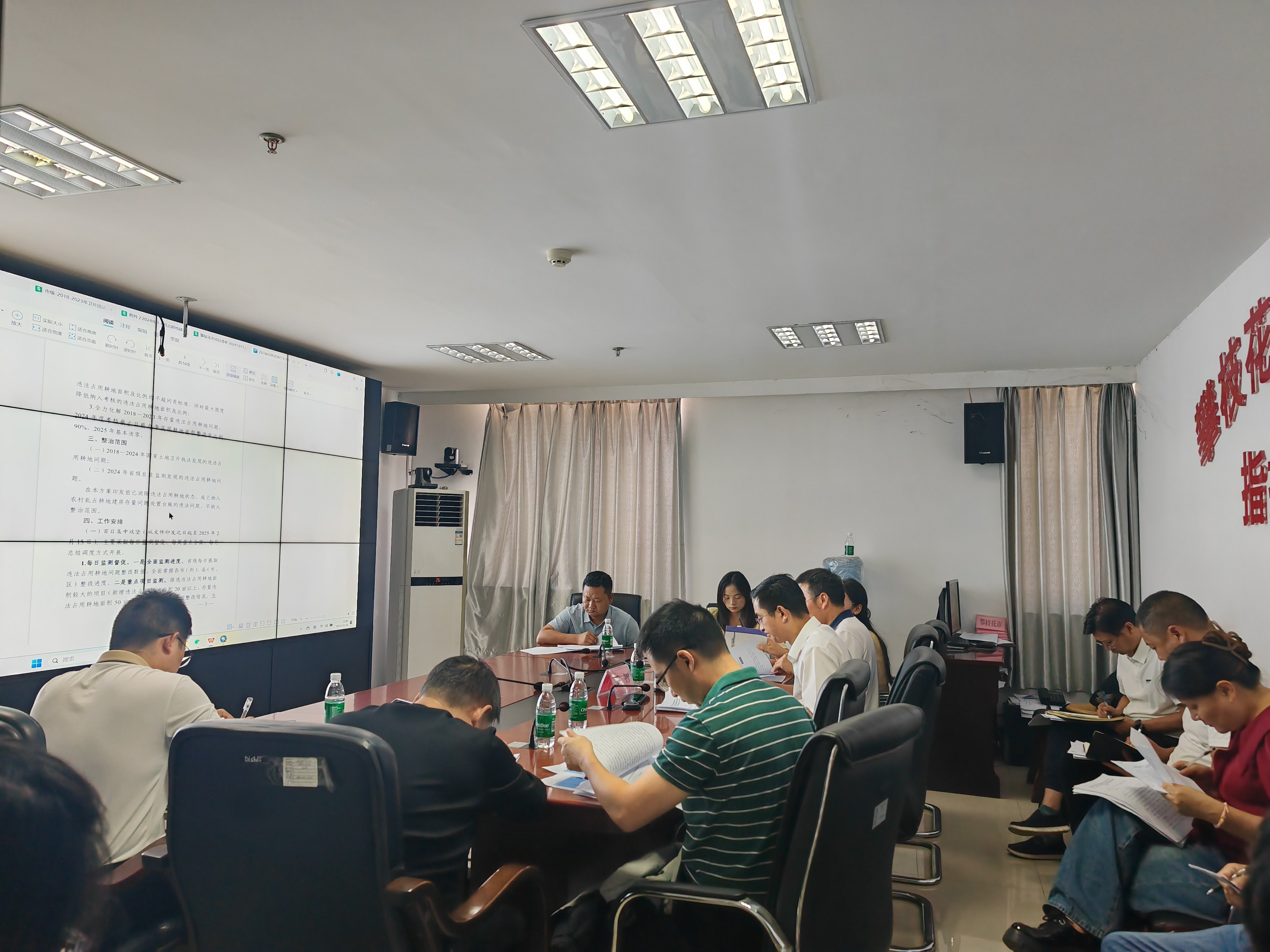 会议传达学习了10月14日全省集中开展违法占用耕地问题整治遏增量、化存量专项行动部署会议精神及该专项行动方案,通报了全市卫片执法发现违法用地整改推进情况和存在的问题,听取了各县(区)局工作情况汇报,对全市未整改到位的违法用地图斑逐宗进行了会商研判,进一步明确整治措施、完成时限,并对下一步工作进行了详细安排部署。