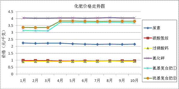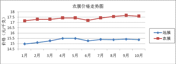 与上月相比,化肥类基本持平,综合平均微跌0.01%;所监测的四个农药品种2涨1跌1持平,综合平均微涨0.04%;农膜类平均跌0.39%。与去年同期相比,农资价格整体上涨。化肥类综合平均涨幅4.33%,其中两种复合肥涨幅较大,达17.03%、13.06%;农药类平均涨幅5.54%,其中多菌灵涨23.75%;农膜类均上涨,综合平均涨幅2.02%。