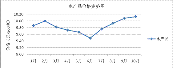 4.水产品类价格。由于受猪肉价格上涨影响,我市水产品市场需求旺盛,价格略有上浮。目前平均价格10.13元/500克,与上月相比水产品平均价格涨0.55%,与去年同期相比价格跌0.44%;