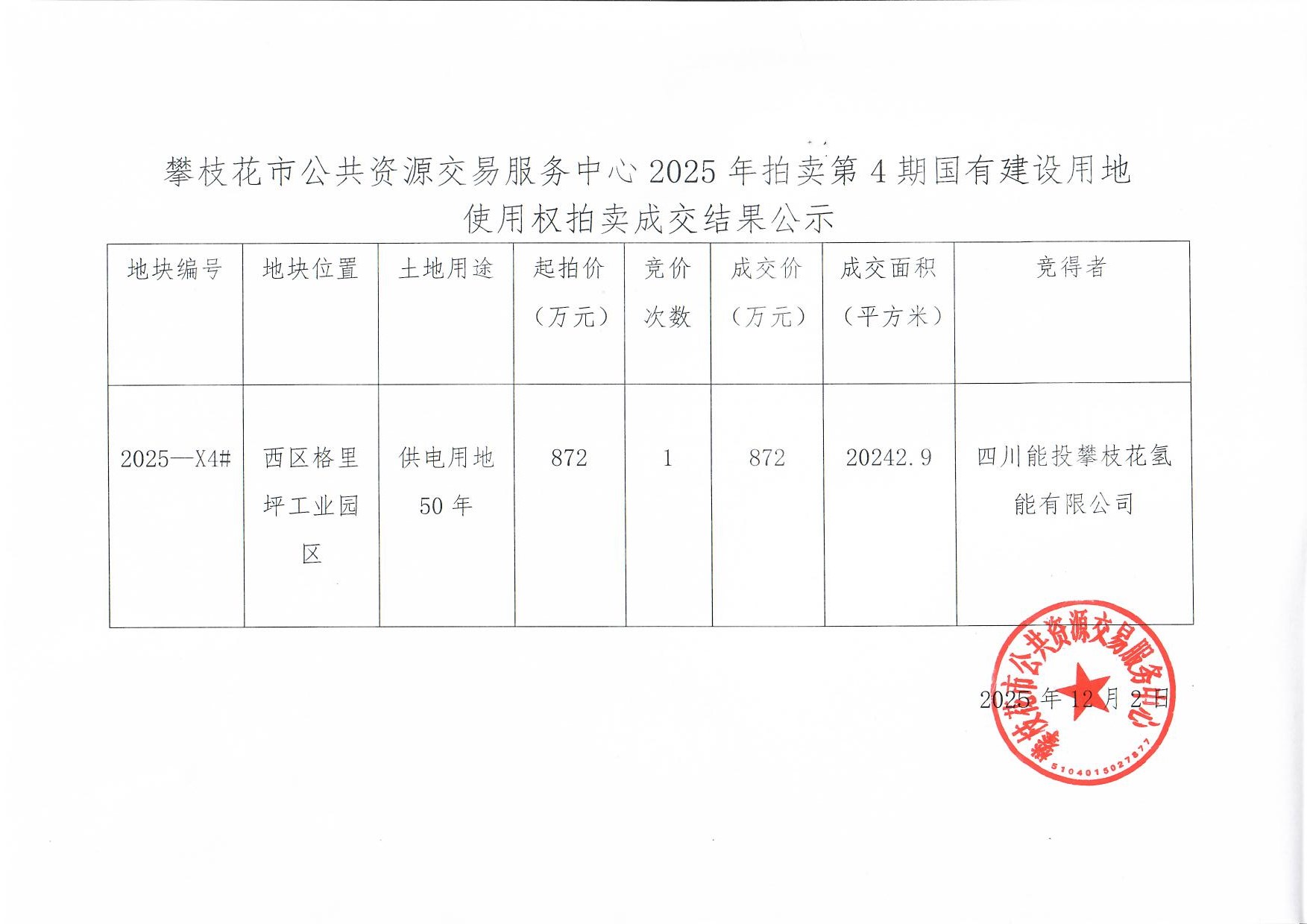 攀枝花市公共资源交易服务中心2025年拍卖第4期国有建设用地使用权拍卖成交结果公示