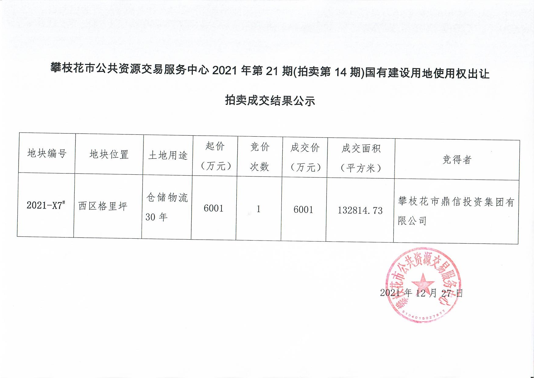 攀枝花市公共资源交易服务中心2021年第21期(拍卖第14期)国有建设用地使用权出让拍卖成交结果公示