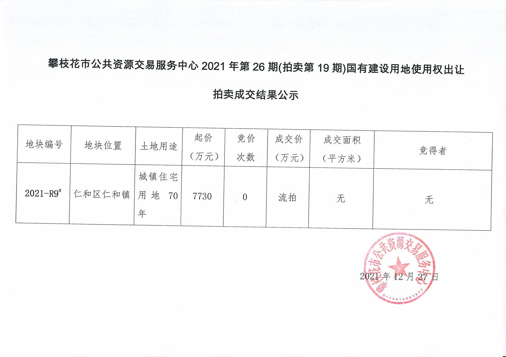 攀枝花市公共资源交易服务中心2021年第26期(拍卖第19期)国有建设用地使用权出让拍卖成交结果公示
