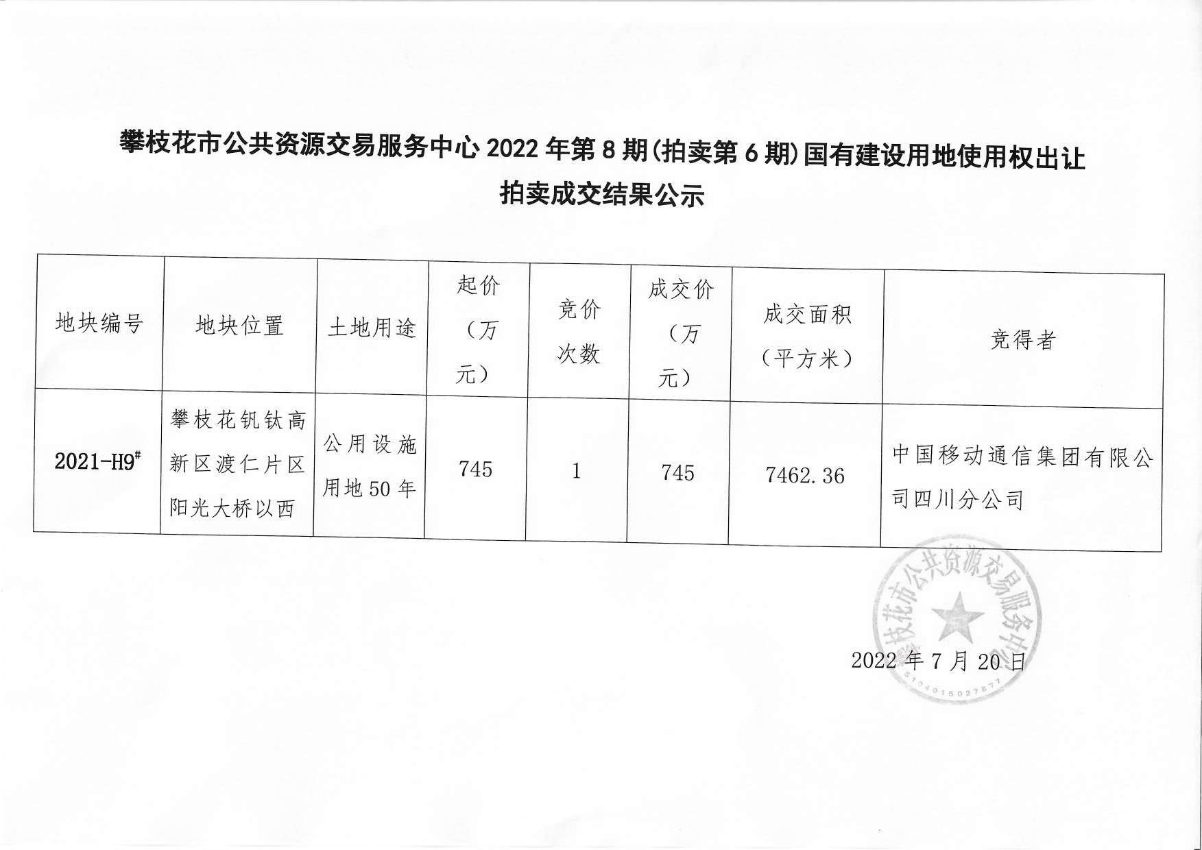攀枝花市公共资源交易服务中心2022年第8期(拍卖第6期)国有建设用地使用权出让拍卖成交结果公示