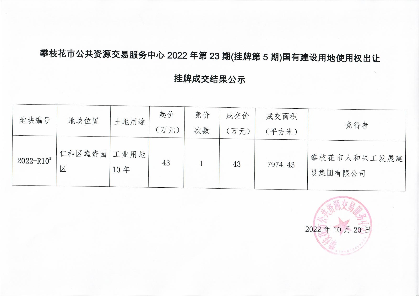 攀枝花市公共资源交易服务中心2022年第23期(挂牌第5期)国有建设用地使用权出让挂牌成交结果公示