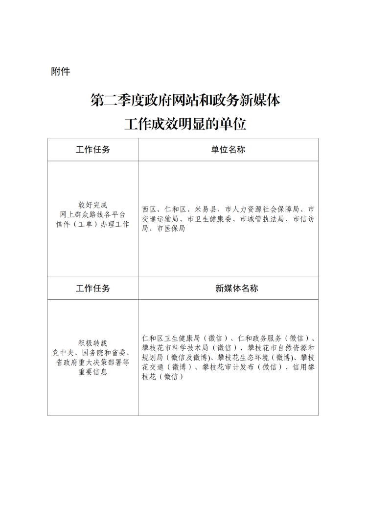 附件:第二季度政府网站和政务新媒体工作成效明显的单位