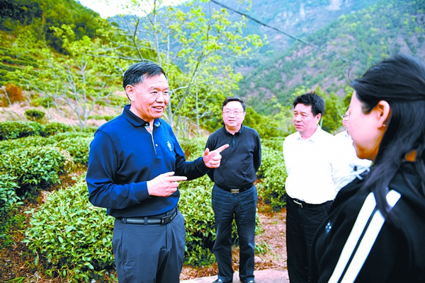 市委书记李建勤在国胜乡茶山了解特色产业发展情况。