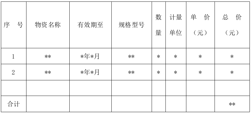 (2)质量合格证明。捐赠人出具捐赠物资质量合格证明材料。捐赠物资有效期限距失效日期须在12个月以上(物资有效期为12个月及以下的,有效期限距失效日期须在6个月以上)。